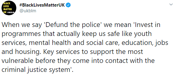 What the BLM organisation’s intention towards the police is isn’t even something we necessarily need speculate on. We just have to look at what the BLM US groups have pushed for and achieved in places like Minneapolis or even the BLM UK’s gofundme page which actually calls for the abolition of the police (it is still up at the time of writing).