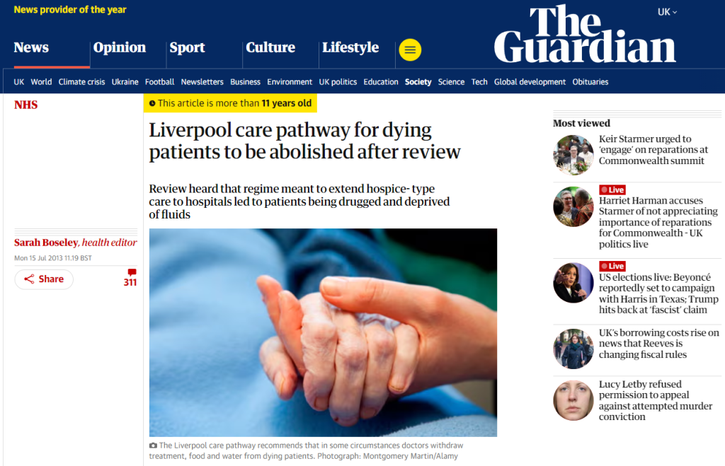 But beyond the annecdotal, a perfect demonstration of a well intentioned end-of-life protocol going rogue was the Liverpool Care Pathway. Much like the proposed MAiD systems, this was a palliative care protocol intended to be used once a patient was assessed as being at the very end stage of life so as to reduce their suffering as much as possible. What it ended up being was a conveyor belt to death which people who weren’t actually dying were shoved on to. Indeed, the care minister at the time of the LCP removal stated: